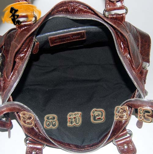 • 084328A Balenciaga单肩包 机车包 巴黎世家手提包 进口羊皮大银钉女包 啡色