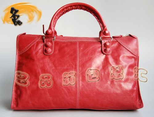 • 084824 BLENCIAGA 巴黎世家 新款奢华大皮钉红色机车包 手提包