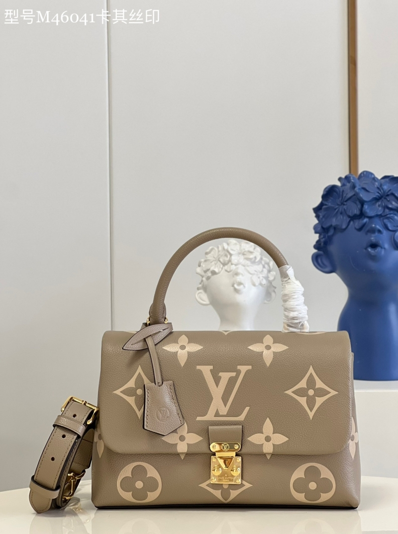 • M46041 LV MADELEINE 中号手袋 压纹皮革手提单肩包 卡其色