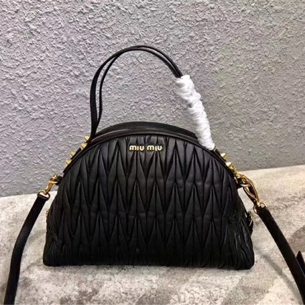 • 5BB034 MIUMIU缪缪 专柜新款 软羊革手提包 月牙包 黑色