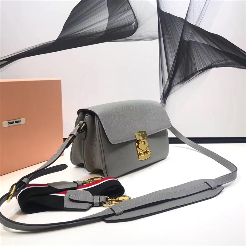 • 5BD113 MiuMiu女包 缪缪手袋 翻盖锁扣 进口山羊皮肩包 灰色