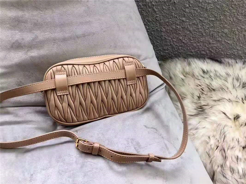 5BL005 MiuMiu缪缪 软羊皮 经典褶皱 拉链 腰包单肩包 卡其