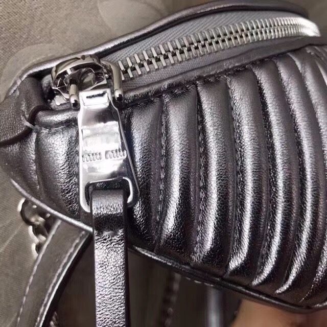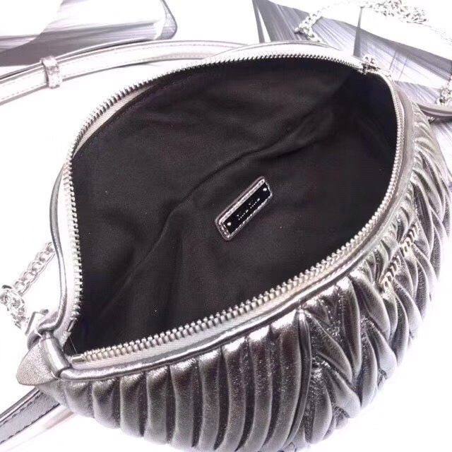 • 5BL010 MIUMIU专柜新款 腰包 褶皱绵羊皮 腰包单肩 两用包 枪色