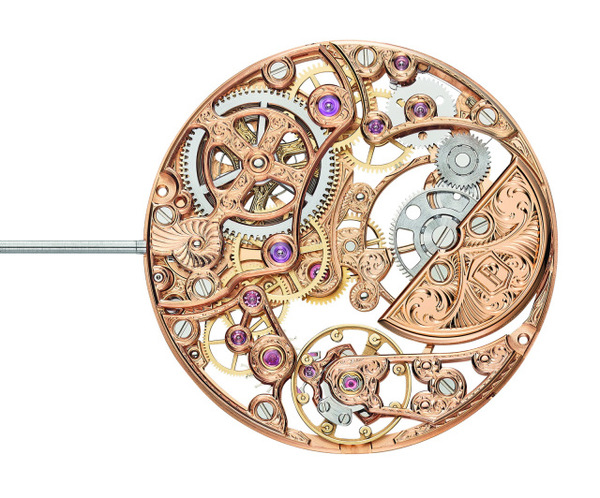 在镂空和雕刻方面花费的巨量工作并不会破坏任何基本制表原则,因为最终制作完成的腕表每天走时误差不超过 -3 到 +2 秒,完全符合百达翡丽印记的严格要求。这在很大程度上归功于采用高科技 Silinvar材料制造的 Spiromax 摆轮游丝,在这款腕表上,可以直接欣赏这种游丝在完全镂空的机芯中正散发出闪亮的紫色光泽。