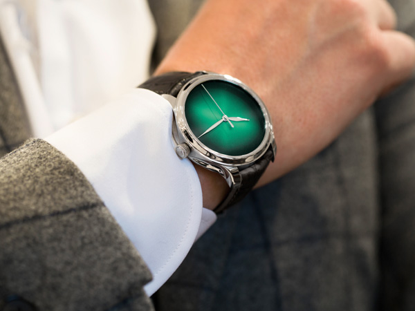 宇宙绿——H. Moser & Cie. 亨利慕时全新深绿色表盘亮相Concept (概念)系列;魅惑、果敢、桀骜不驯——这款表盘延续着品牌矢志追求的最精湛之“高级钟表”传统。宇宙绿表盘在勇创者大三针宇宙绿概念(Endeavour Centre Seconds Concept Cosmic Green)腕表上得以淋漓尽现。没有Logo与时标的低调设计,让色彩成为焦点,尽显极简主义式奢华,令人一见倾心,不容错失。
