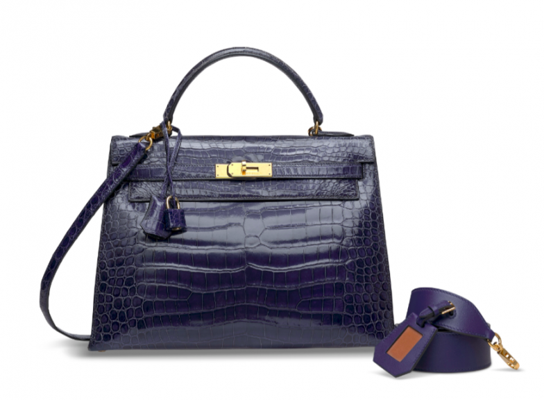 普莱顿蓝色Porosus鳄鱼皮Kelly 32