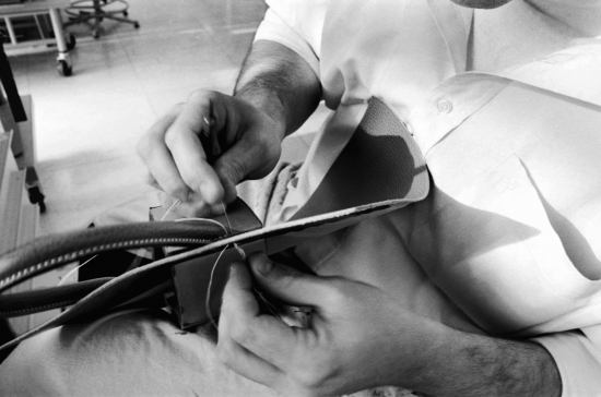 全手工。包是工匠们一针一线亲手缝制,亲手划出样式。为什么使用浸过蜡的麻线?因为防潮效果好。如果顾客买走一个爱马仕包,那她的包将终生由制作它的工匠来维修。等于就是请了个专门的修理师傅,一对一的服务。