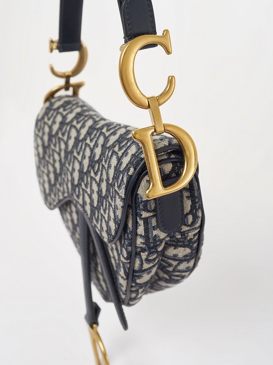 在金属配件上,新版马鞍包的 CD 字母更为厚重饱满,并进行了做旧处理,与复古 Oblique 花纹互相映衬,使包袋整体呈现一种历久弥新的时尚感。
